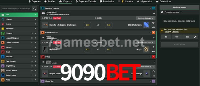 O 9090Bet oferece uma grande seleção de opções de apostas em e-sports com probabilidades competitivas
